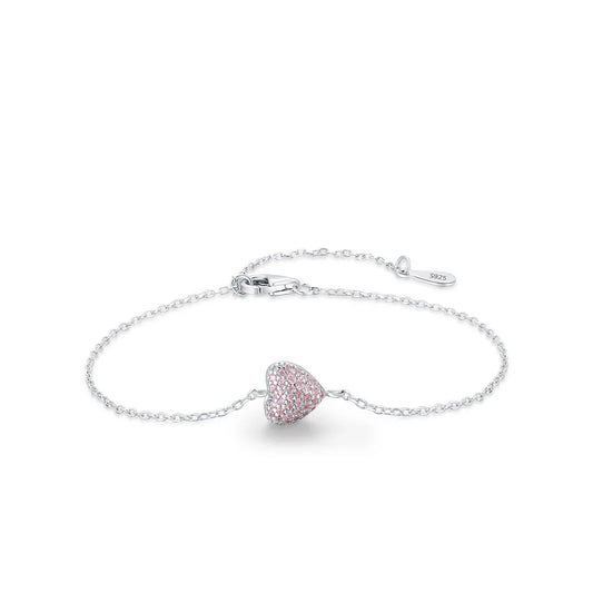 Lara 925 Sterling Silver Pink Heart Adjustable Bracelet for Women