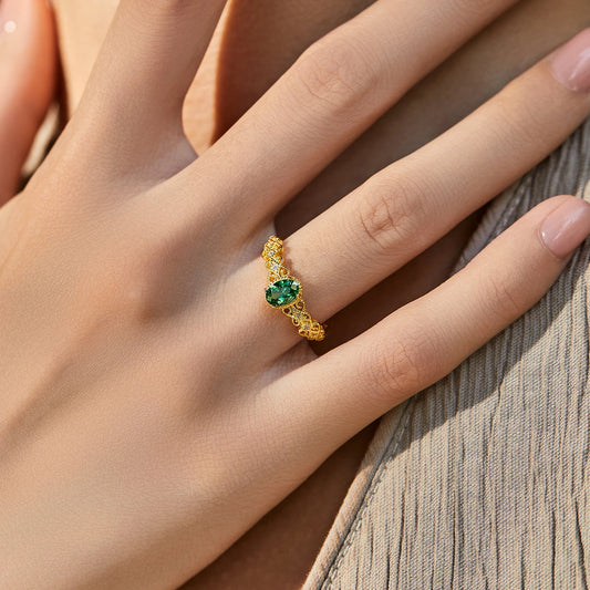 MQ Gold Color Rings 925 Silver Green Jewelry Accessories