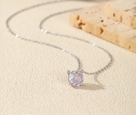 MQ Original Design Necklace 925 Silver Lavender Color Rose Cut CZ Pendant Necklace