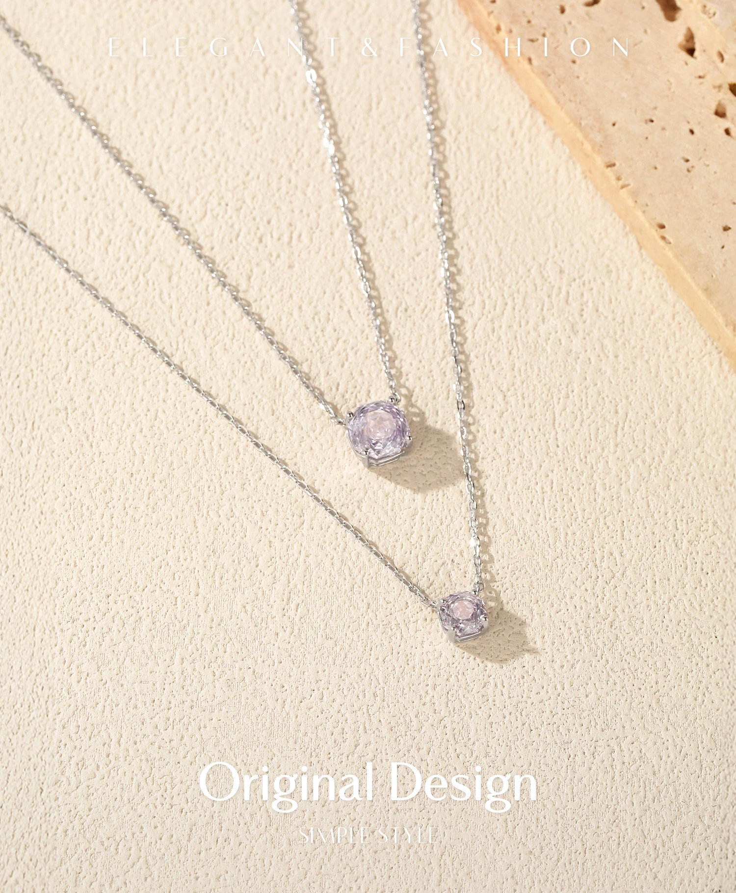 MQ Original Design Necklace 925 Silver Lavender Color Rose Cut CZ Pendant Necklace